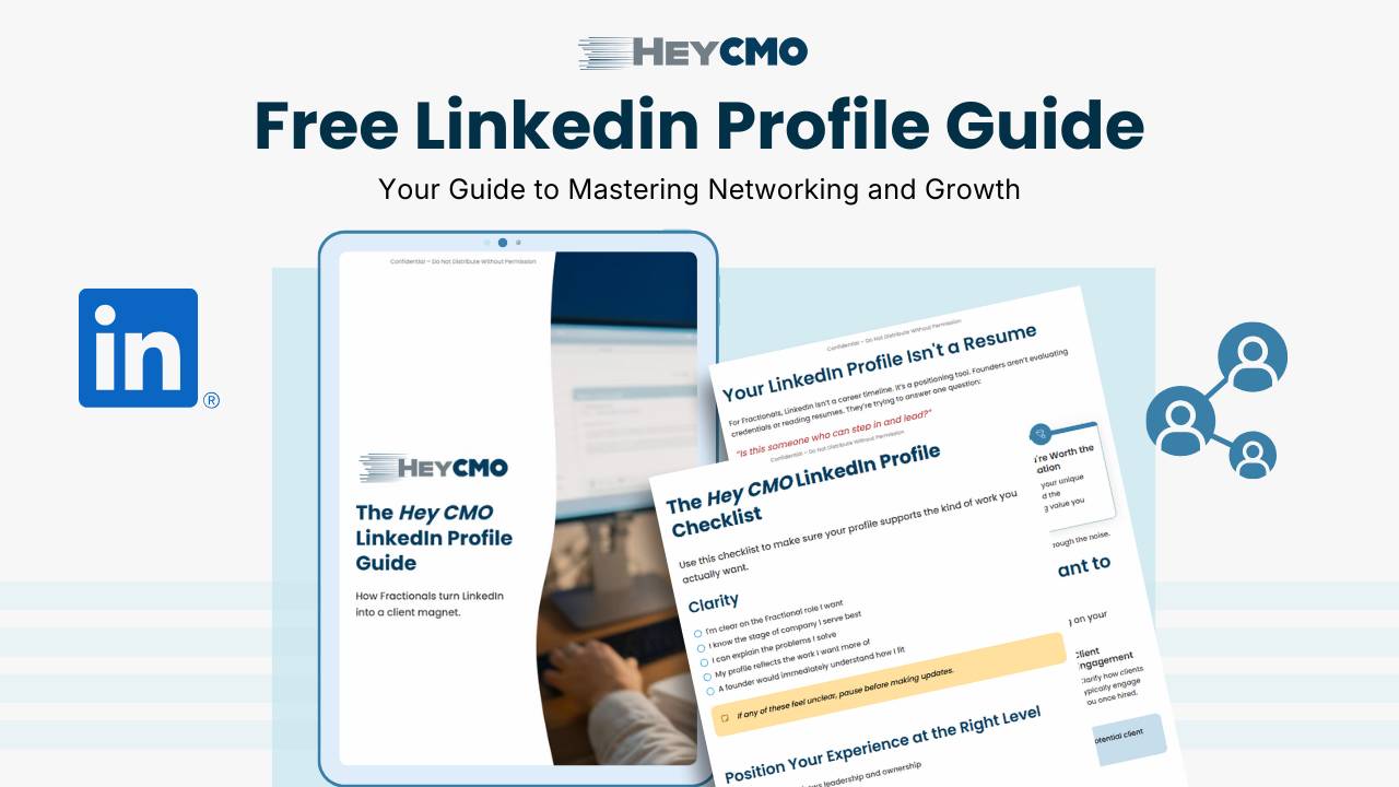 A free practical guide for Fractional leaders to turn LinkedIn into a client magnet. Learn how to position your profile for clarity, credibility, and inbound conversations with the right founders.
